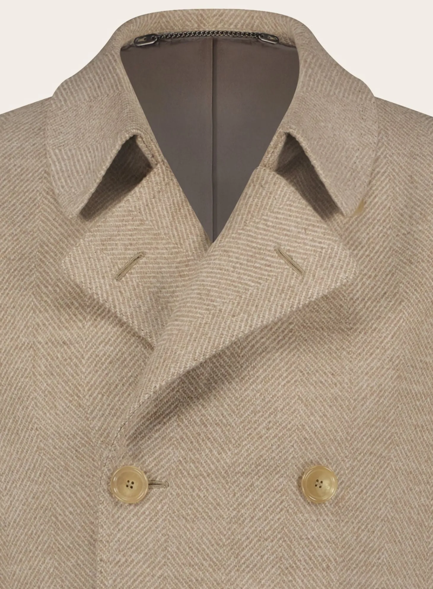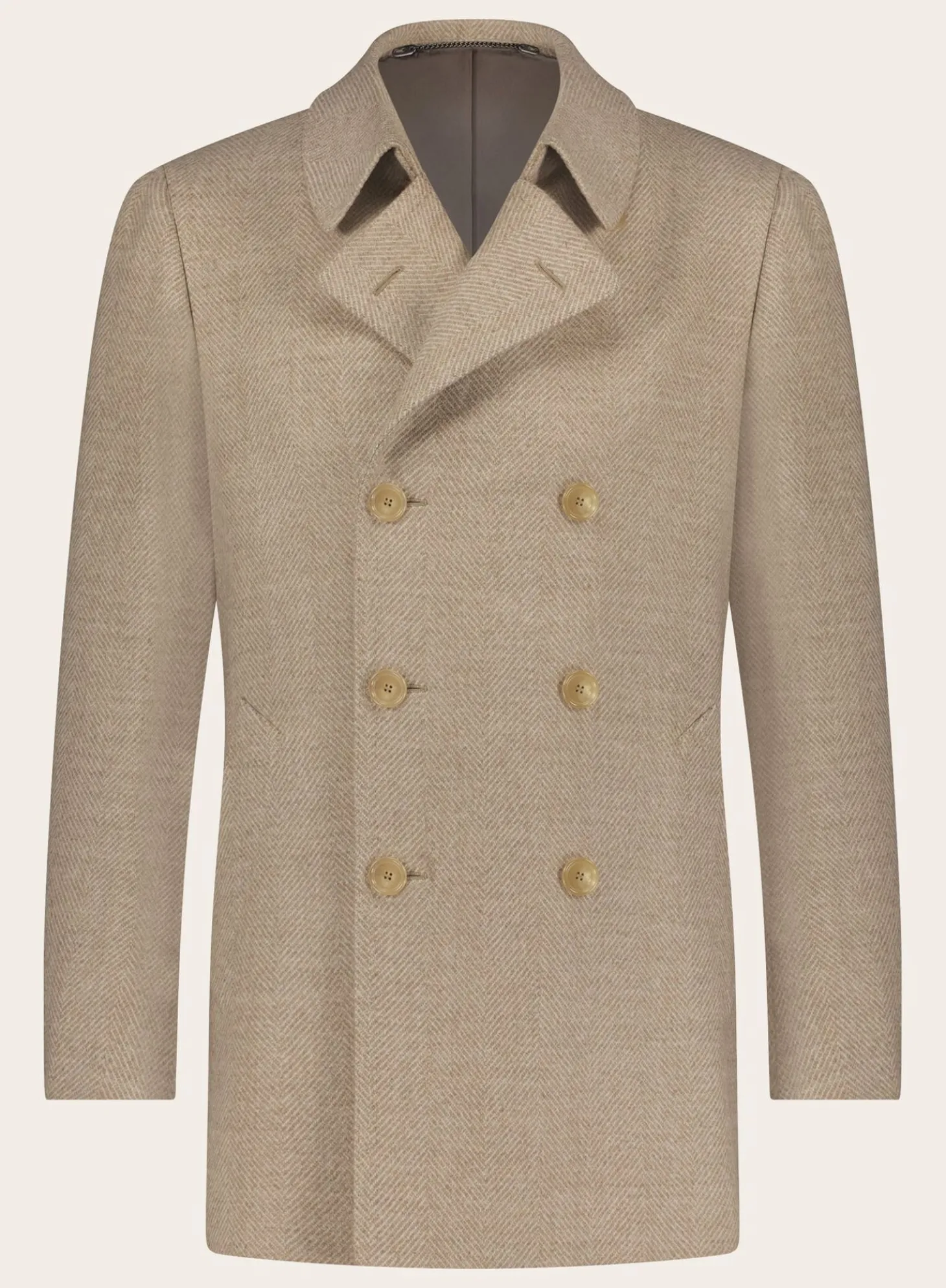Double Breasted Herringbone Mantel Van Cesare Attolini, Met De Hand Gemaakt In Italië Van Wol. Gedetailleerd Met Een Martingale En Enkele Split.