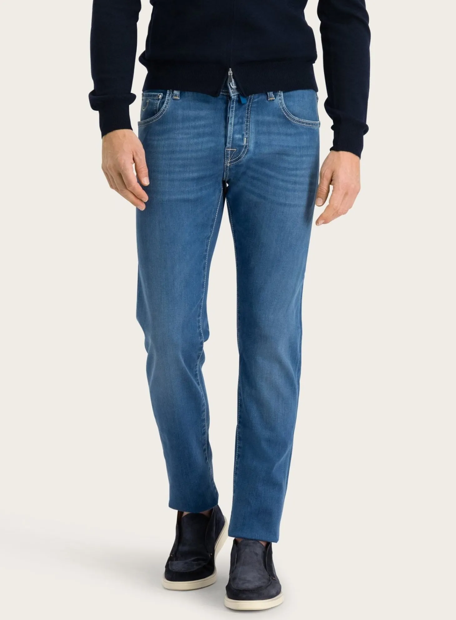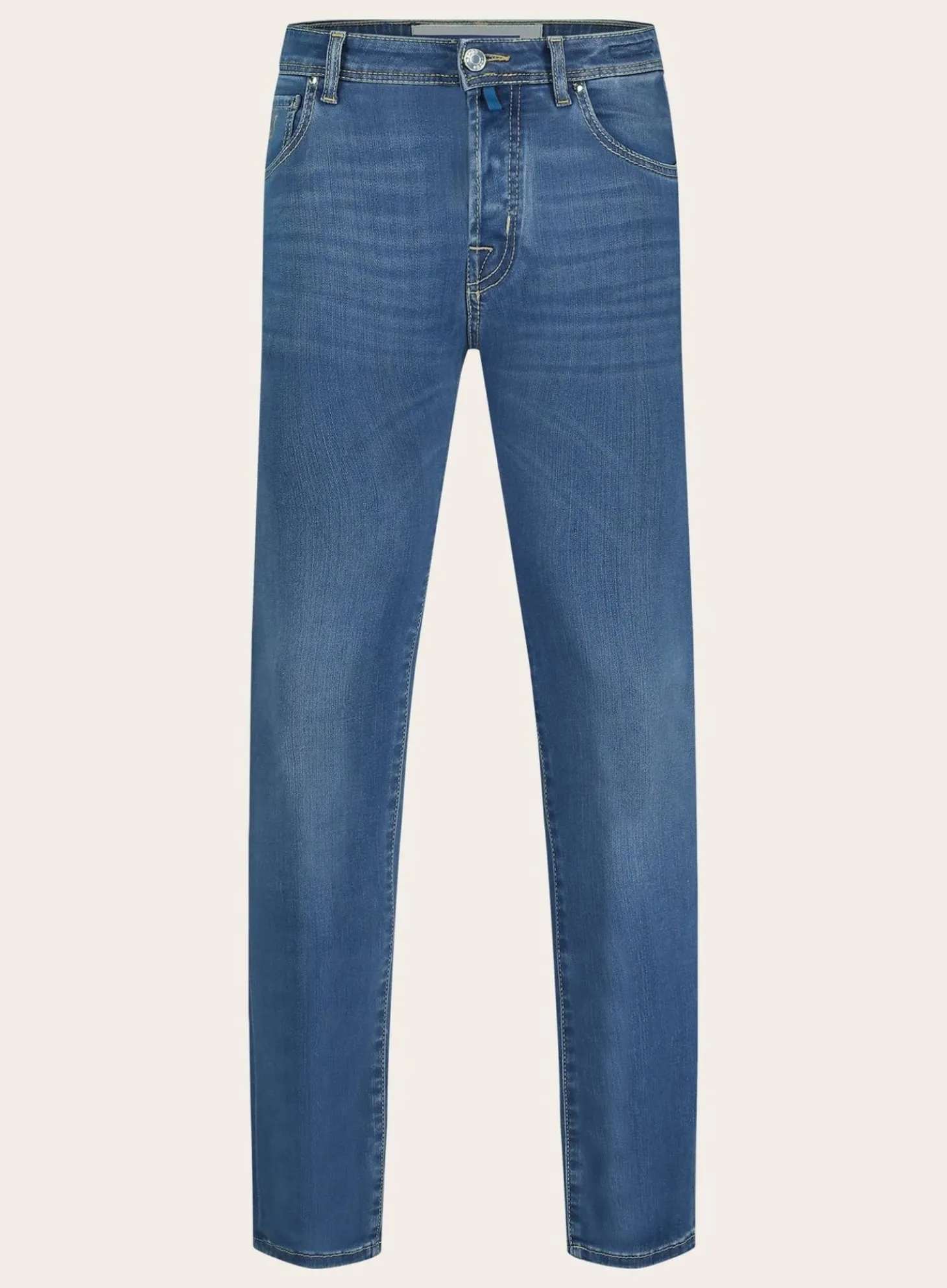 De Nick Slim-Fit Jeans Van Jacob Cohen Combineert Een Klassiek Ontwerp Met Een Hedendaagse Pasvorm. Uitgevoerd In Een Aantrekkelijke Medium Blauwe Wassing, Biedt Deze Broek Veelzijdigheid Voor Dagelijks Gebruik. Kenmerkend Zijn De Contrasterende Stiksels, De Gestileerde Achterzakken En Het Subtiele Merklabel.