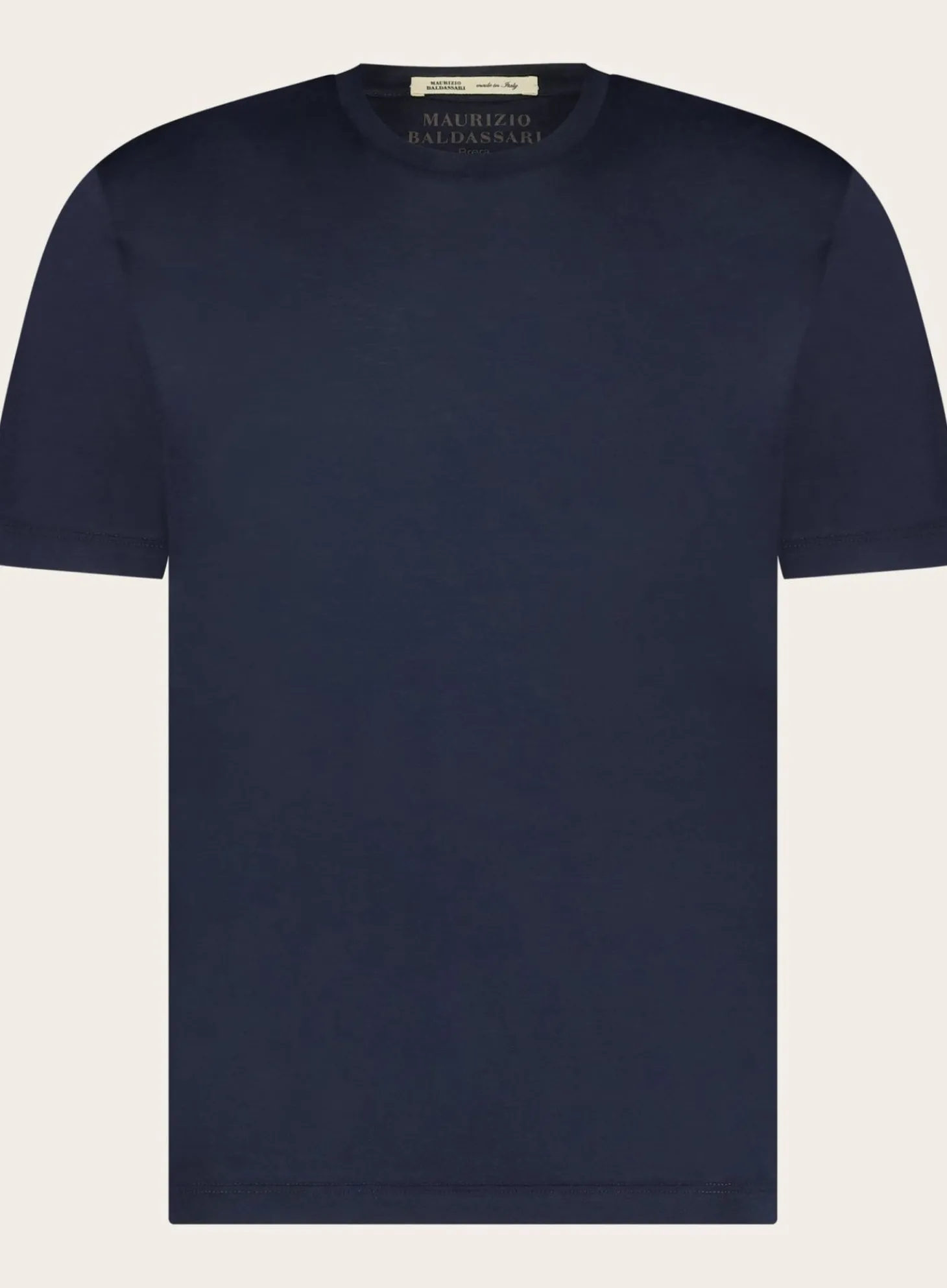 Dit Elegante T-Shirt Van Maurizio Baldassari, Vervaardigd Uit Een Mix Van Zijde En Katoen, Straalt Een Luxe Uit Met Een Simpel Silhouet. HEt T-Shirt Heeft Een Ronde Hals En Korte Mouwen, Afgewerkt Met Een Fijne Boord. De Neutrale Tint Maakt Het Een Onmisbaar Stuk Dat Zowel In Formele Als In Informele Settings Tot Zijn Recht Komt.