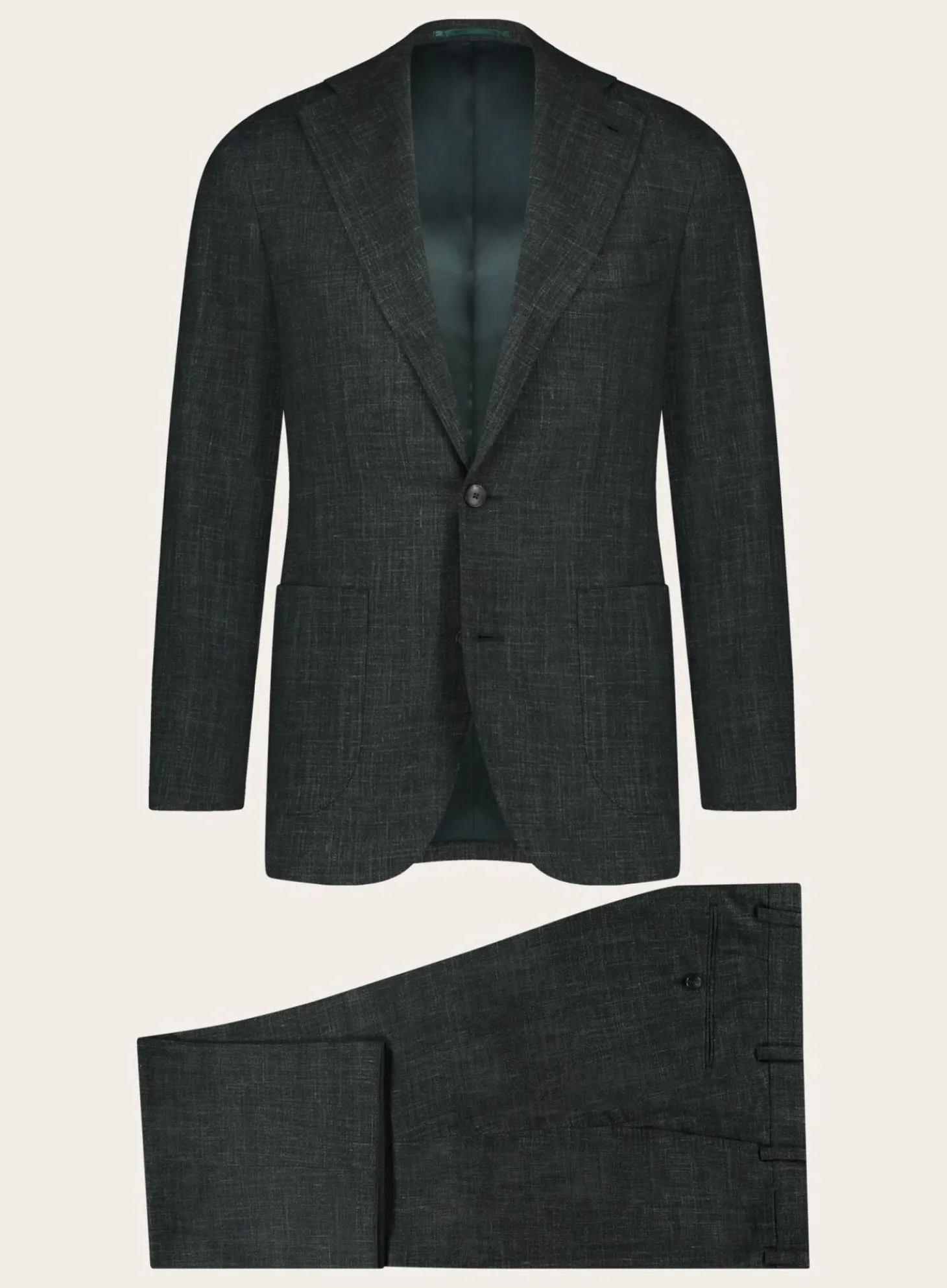Ontdek Het Luxueuze Ogér Pak, Vervaardigd Uit Een Mix Van Wol, Zijde En Linnen Voor Ultiem Comfort En Stijl. Ideaal Voor Warmere Maanden Dankzij Het Lichte Gewicht En Verfijnd Met Subtiele Weefdetails. Een Must-Have Voor Elke Garderobe Op Zoek Naar Tijdloze Elegantie.