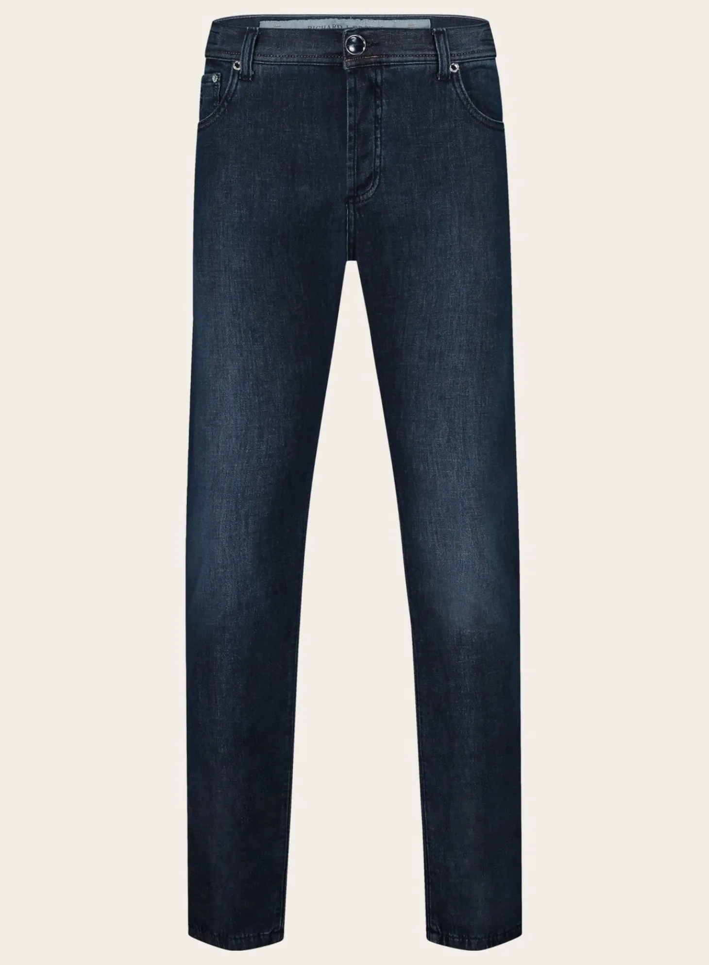De Tokyo Jeans Van Richard J. Brown Is Een Uitgesproken Kledingstuk Dat Een Donker Blauwe Wassing Combineert Met Een Gestroomlijnd Design. Deze Jeans Is Voorzien Van Een Traditionele Ritssluiting, Klassieke Vijfzakkenconstructie En Subtiele Stiksels. De Jeans Heeft Een Subtiele Verwassen Effect.