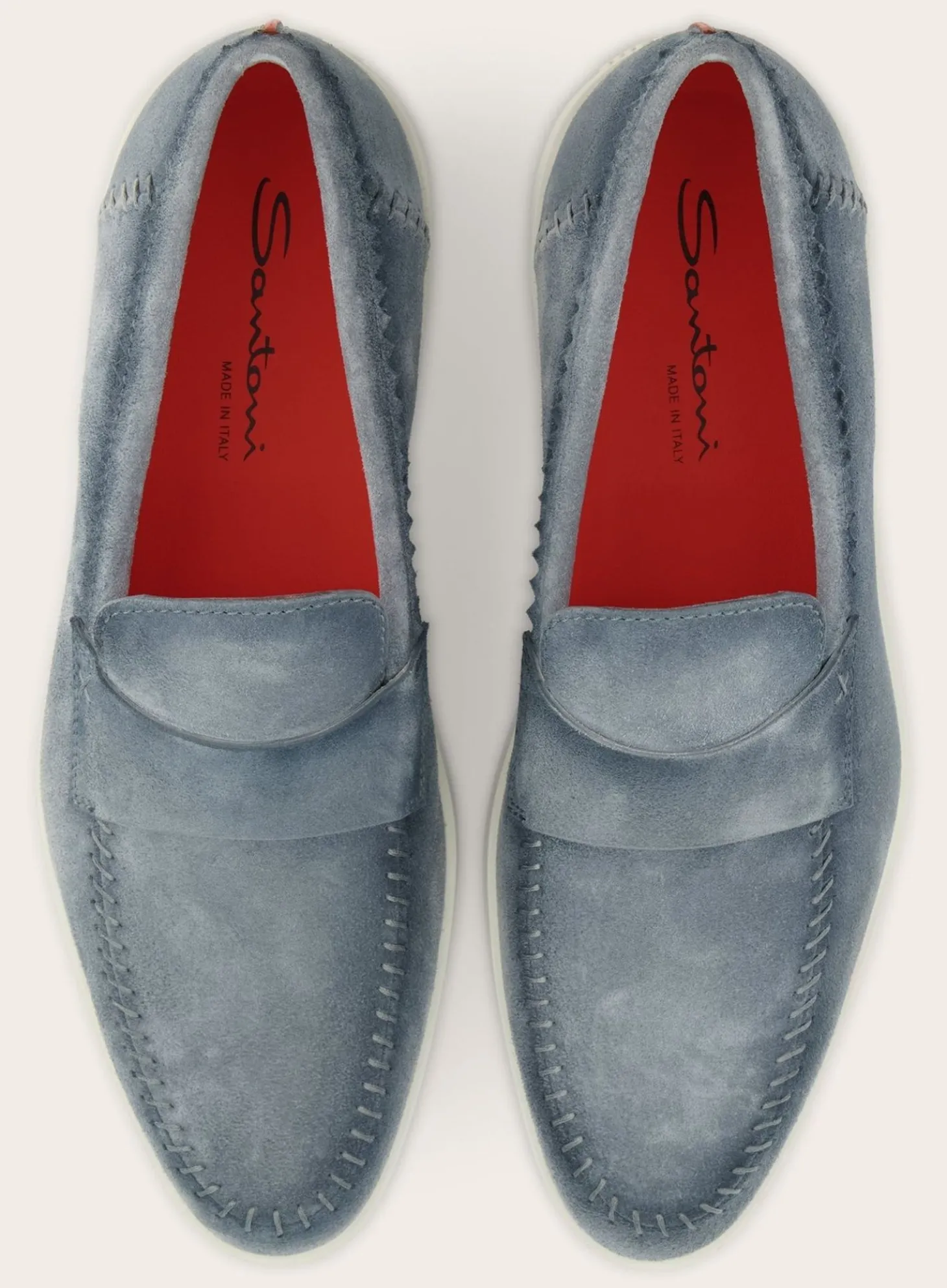 Santoni Instappers Met Atlantis Leest. Gemaakt Van Premium Suède. Heeft Een Taps Toelopend Silhouet, Waarbij Het Bovenwerk Is Afgewerkt Met Een Vamp.