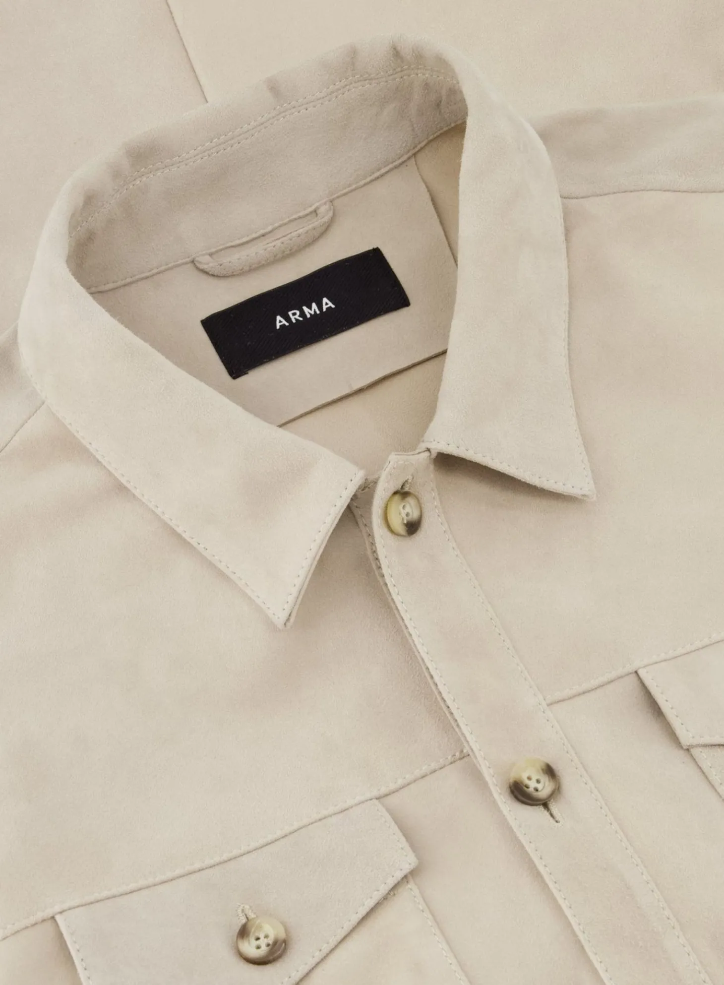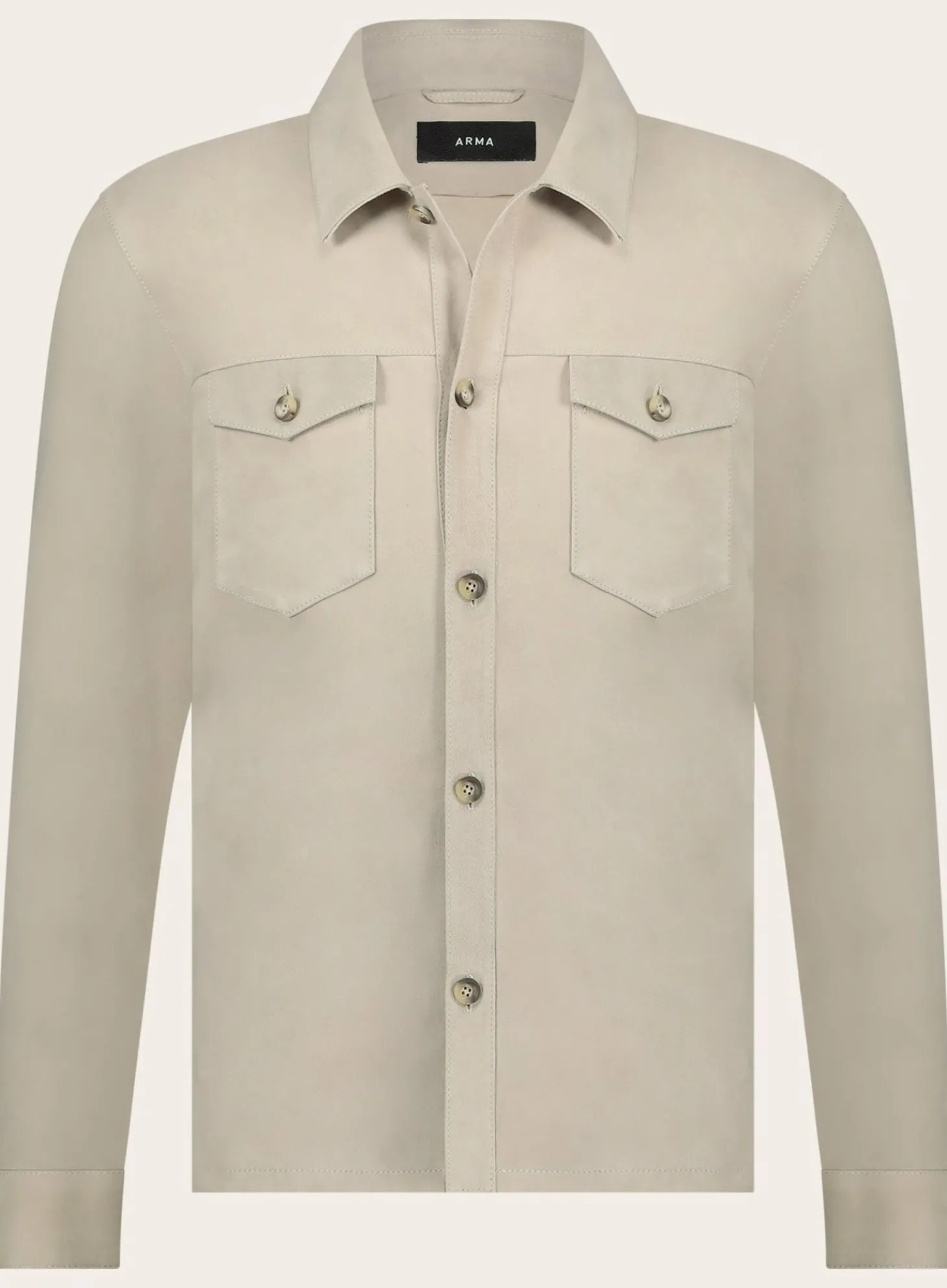 Het Dex Overshirt Van Arma Is Uitgevoerd In Een Zachte, Neutrale Kleur En Heeft Een Strakke Knoopsluiting Aan De Voorkant. De Nauwkeurige Stiksels En De Scherpe Kraag Versterken De Gestroomlijnde Look Van Het Overshirt. Het Is Gemaakt Van Hoogwaardige Materialen, Wat Bijdraagt Aan De Luxe Uitstraling En Het Comfort.