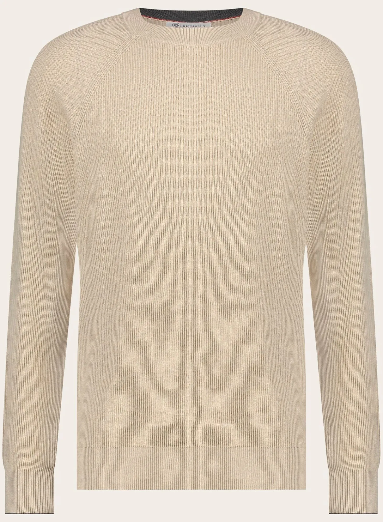 Brunello Cucinelli Slim-Fit Rib-Knit. De Trui Is Gemaakt Van Katoen En Heeft Een Ronde Hals En Rib-Knit Uiteinden. Gemaakt In Italië.