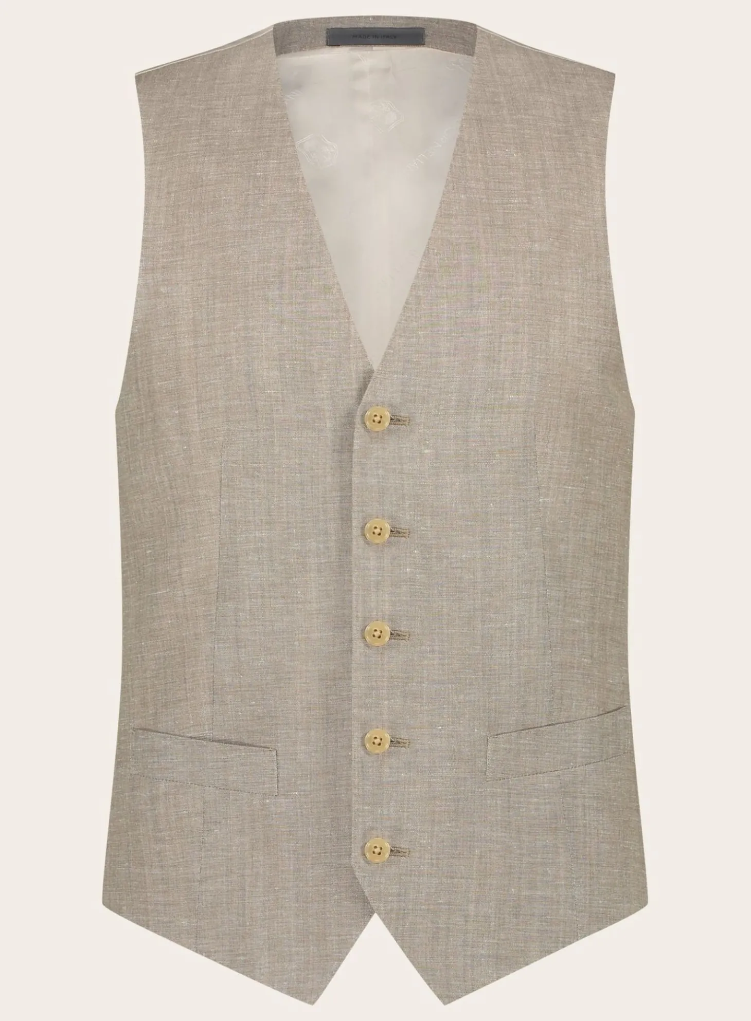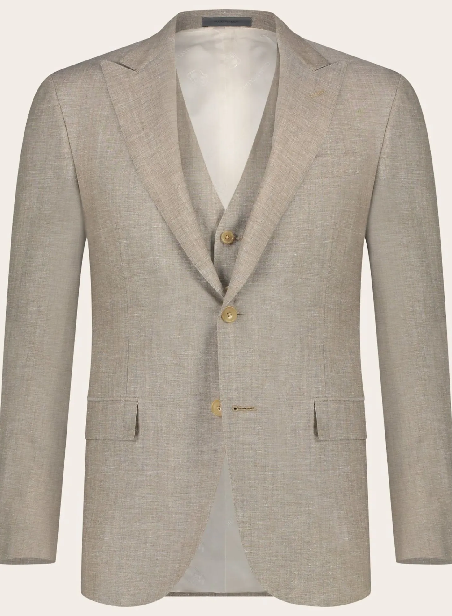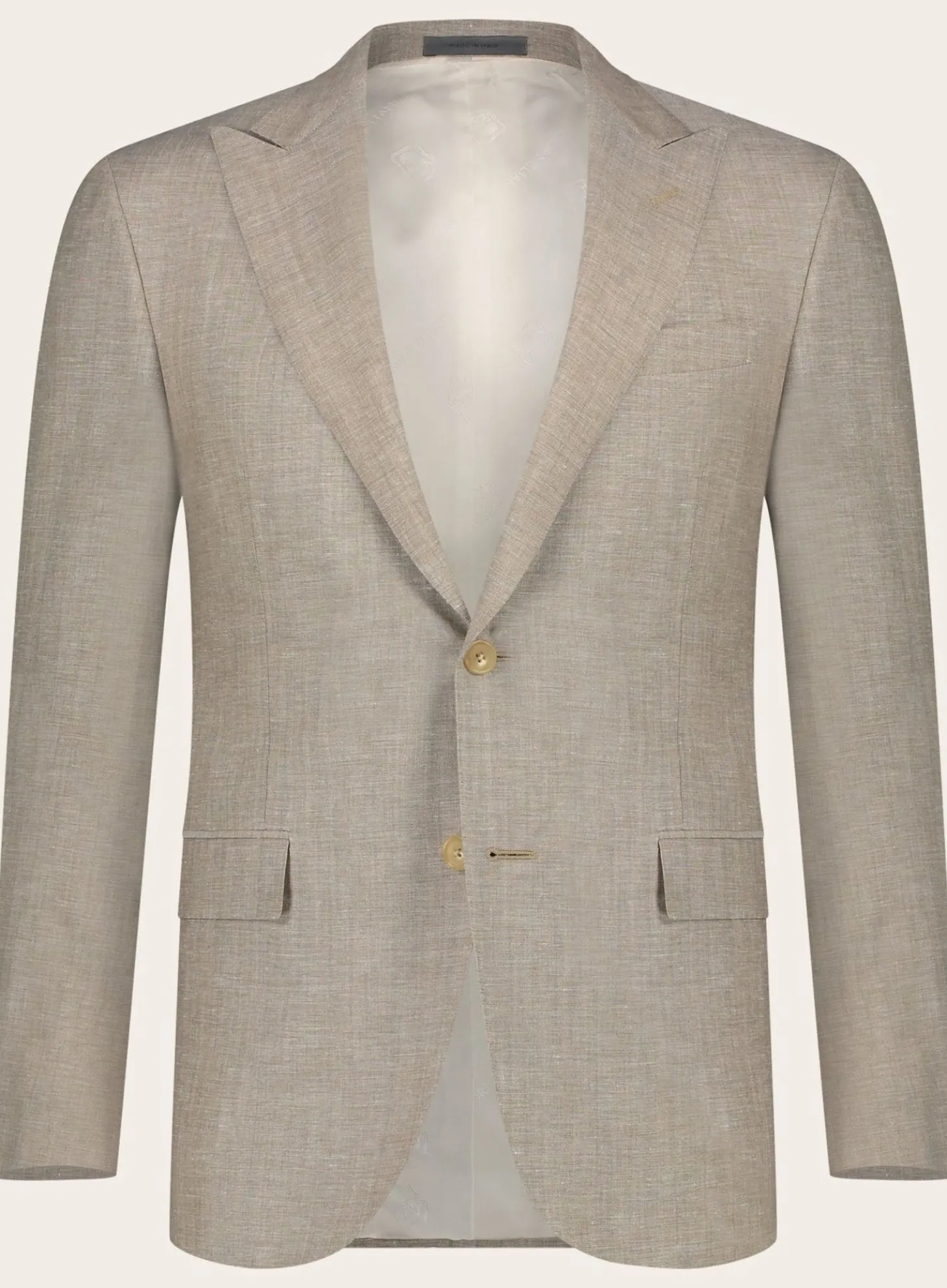Dit Pak Van Corneliani Is Vervaardigd Uit Een Hoogwaardige Mix Van Wol En Linnen, Wat Zorgt Voor Een Perfecte Balans Tussen Comfort En Stijl. Het Lichtgewicht Materiaal Maakt Dit Pak Ideaal Voor De Warmere Maanden, Terwijl De Subtiele Weefstructuur Een Verfijnd Detail Toevoegt Aan Het Geheel.