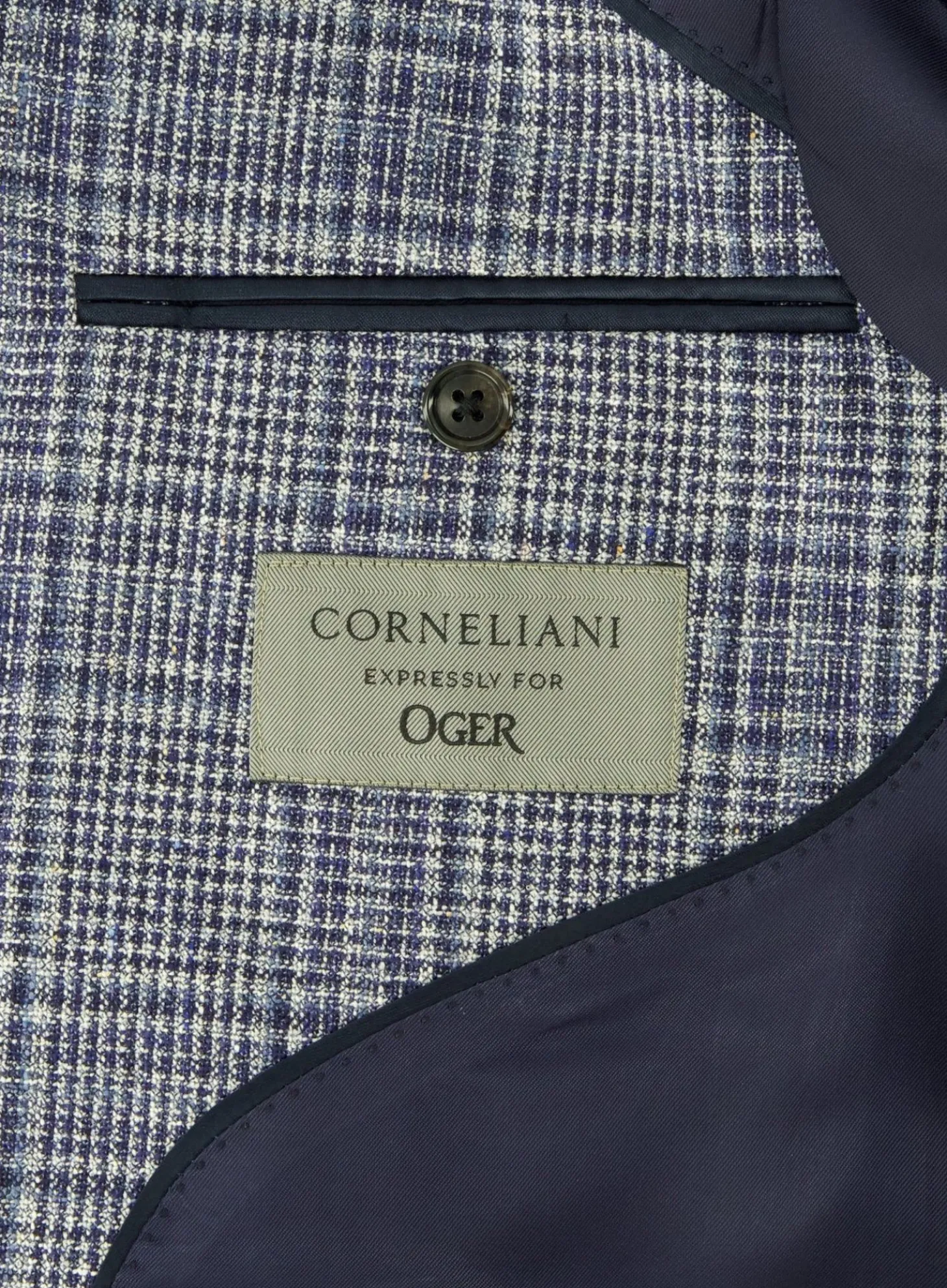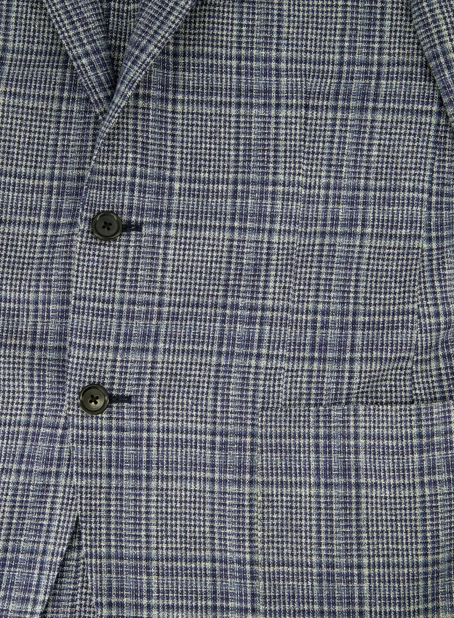 Het Jasje Van Corneliani Heeft Een Klassiek Glencheck Patroon En Is Uitgevoerd In Een Veelzijdige Blauwtint, Waardoor Het Een Stijlvolle Keuze Is Voor Verschillende Gelegenheden. Het Ontwerp Omvat Een Notched Revers, Twee Knopen Aan De Voorkant En Functionele Zakken, Waaronder Een Borstzak.