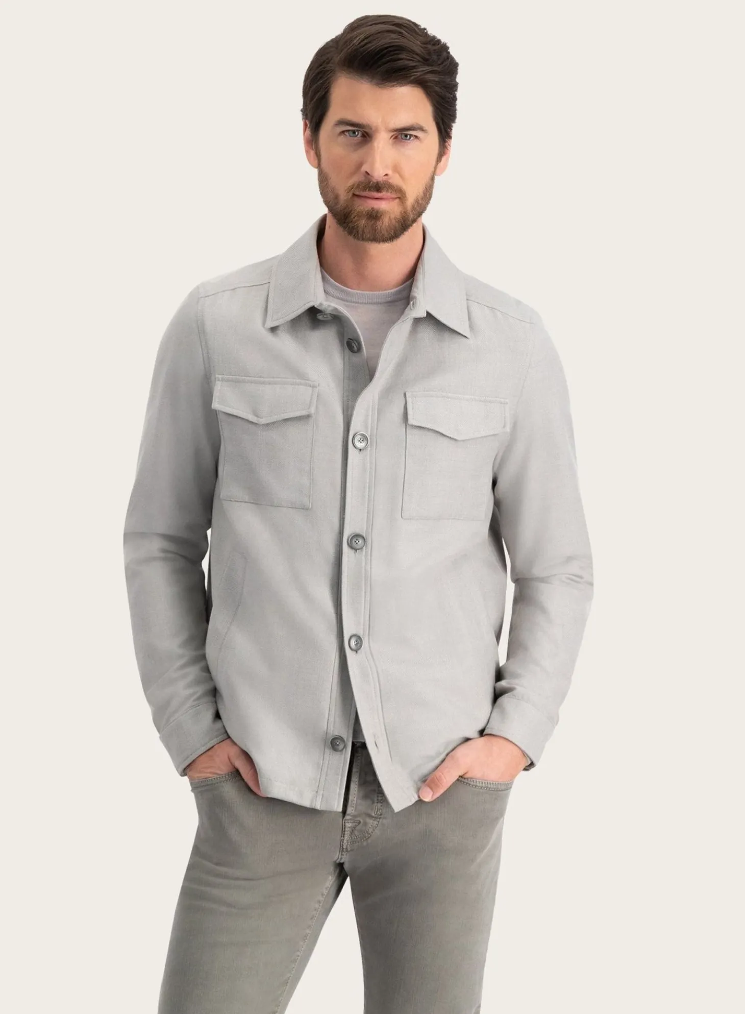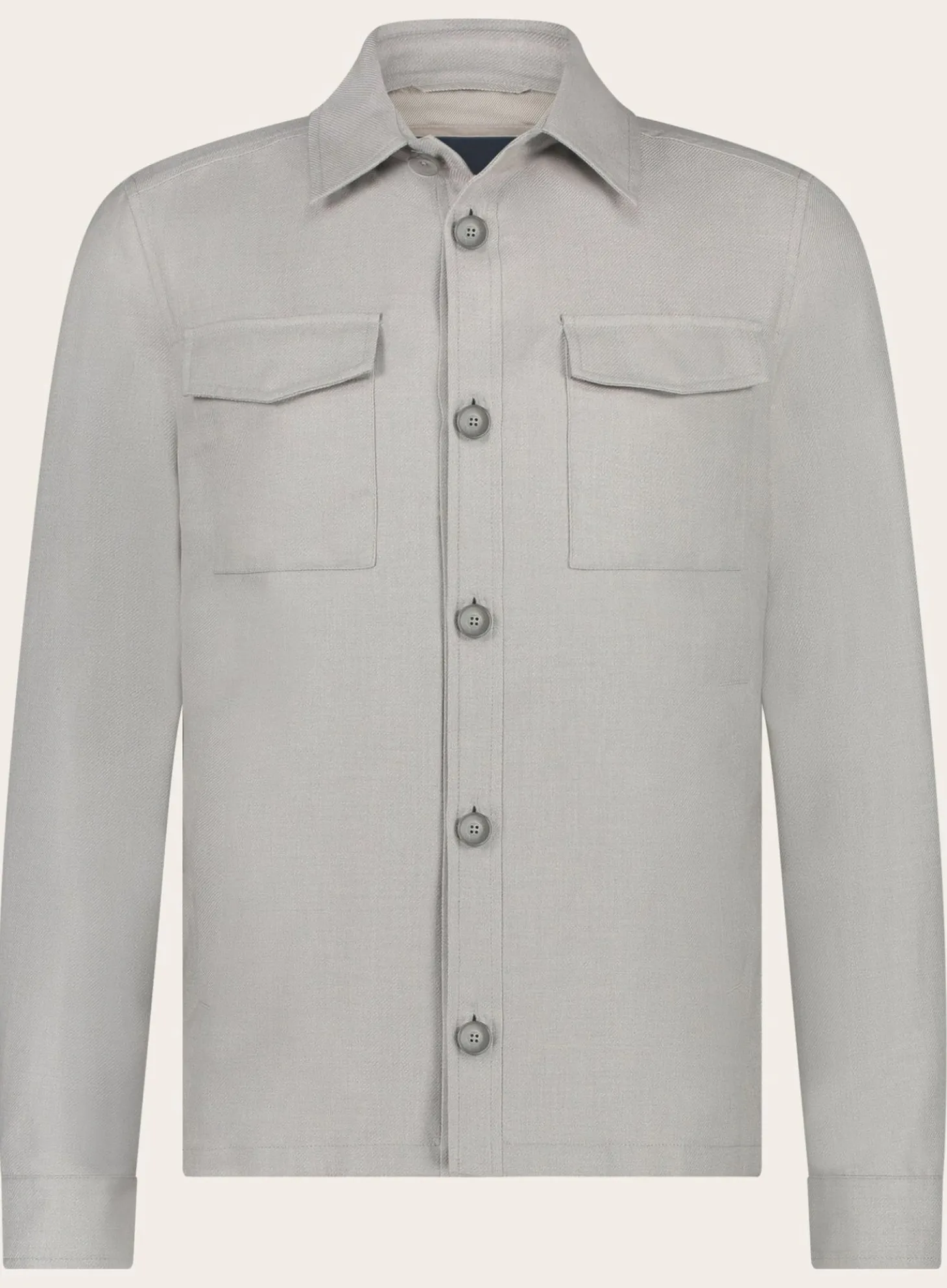 Het Overshirt Van Henro Is Vervaardigd Uit Een Lichtgewicht Materiaal Dat Zowel Comfortabel Als Duurzaam Is. De Subtiele Textuur Van De Stof Voegt Diepte Toe Aan Het Anders Strakke Ontwerp. De Puntkraag Geeft Het Overshirt Een Klassieke Touch, Terwijl De Strakke Lijnen En De Eenvoudige Knoopsluiting Zorgen Voor Een Moderne Uitstraling.