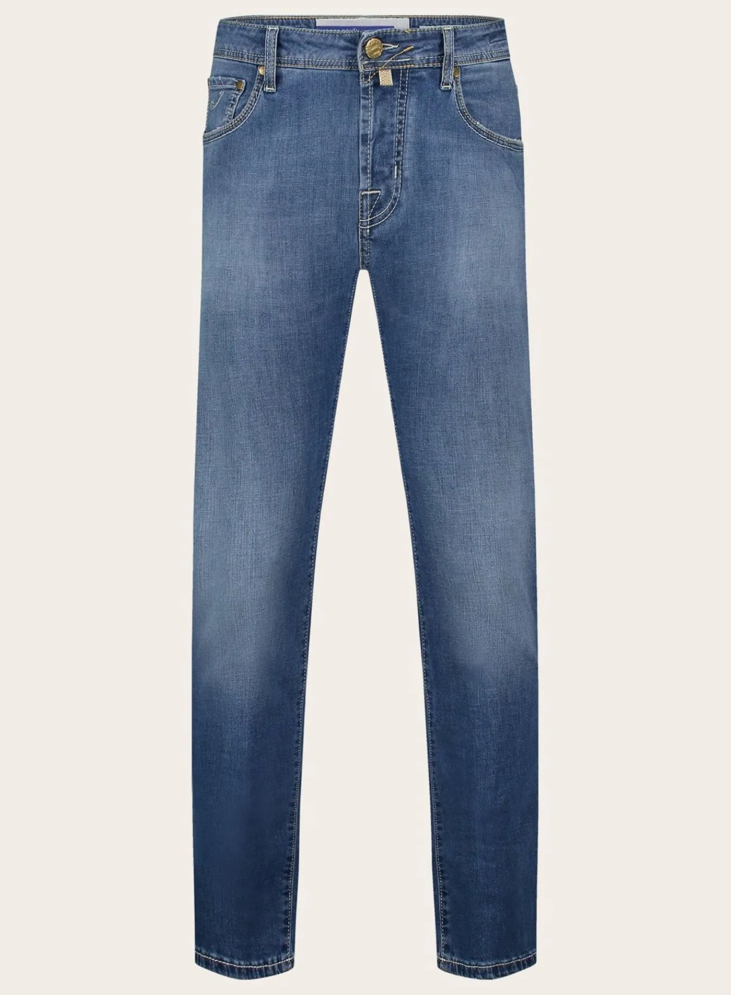 De Nick Slim-Fit Jeans Is Met Precisie Gesneden Om Een Gestroomlijnde Look Te Creëren, Terwijl Het Toch Voldoende Bewegingsvrijheid Biedt. De Authentieke Gouden Stiksels En De Kenmerkende Jacob Cohën-Knopen Versterken De Exclusieve Uitstraling Van De Jeans.