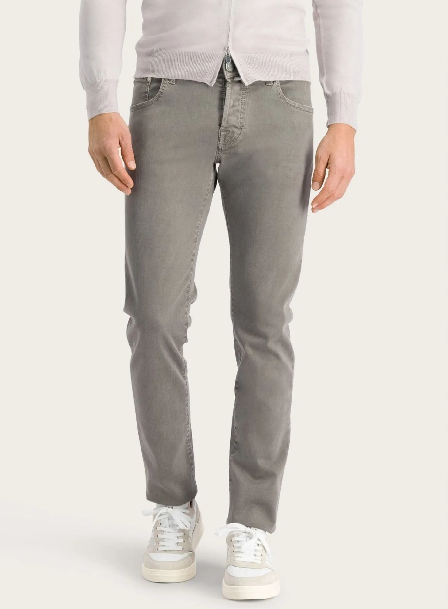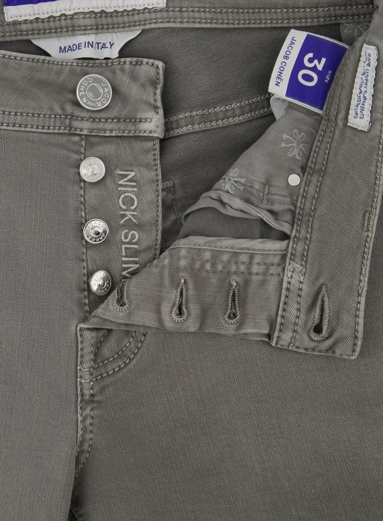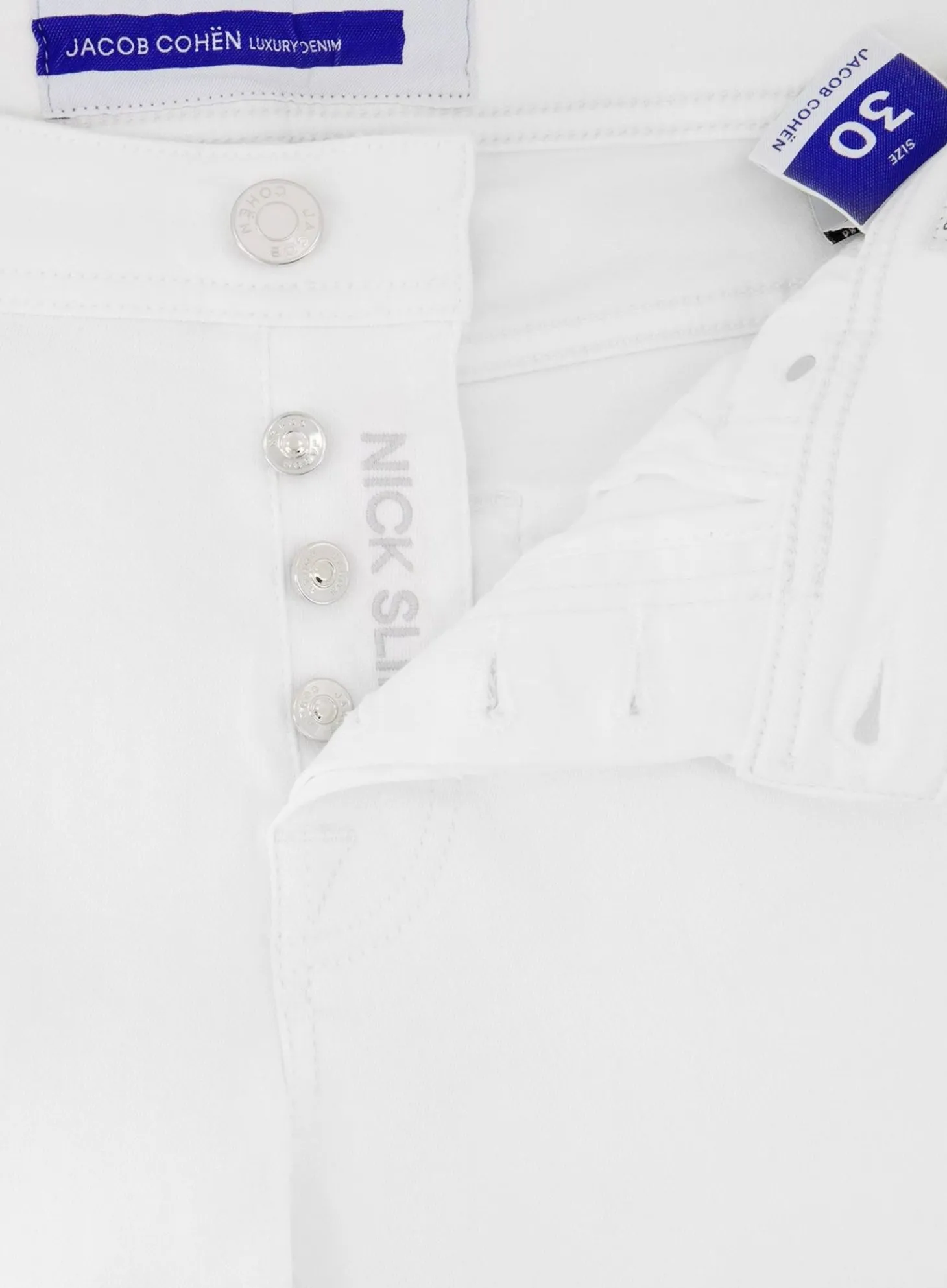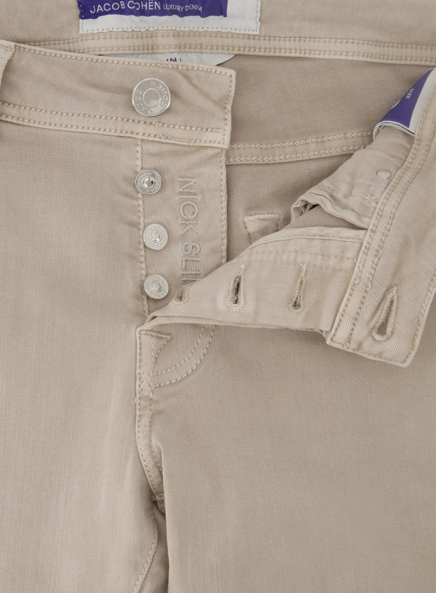 De Nick Slim-Fit Jeans Is Met Precisie Gesneden Om Een Gestroomlijnde Look Te Creëren, Terwijl Het Toch Voldoende Bewegingsvrijheid Biedt. De Authentieke Gouden Stiksels En De Kenmerkende Jacob Cohën-Knopen Versterken De Exclusieve Uitstraling Van De Jeans.