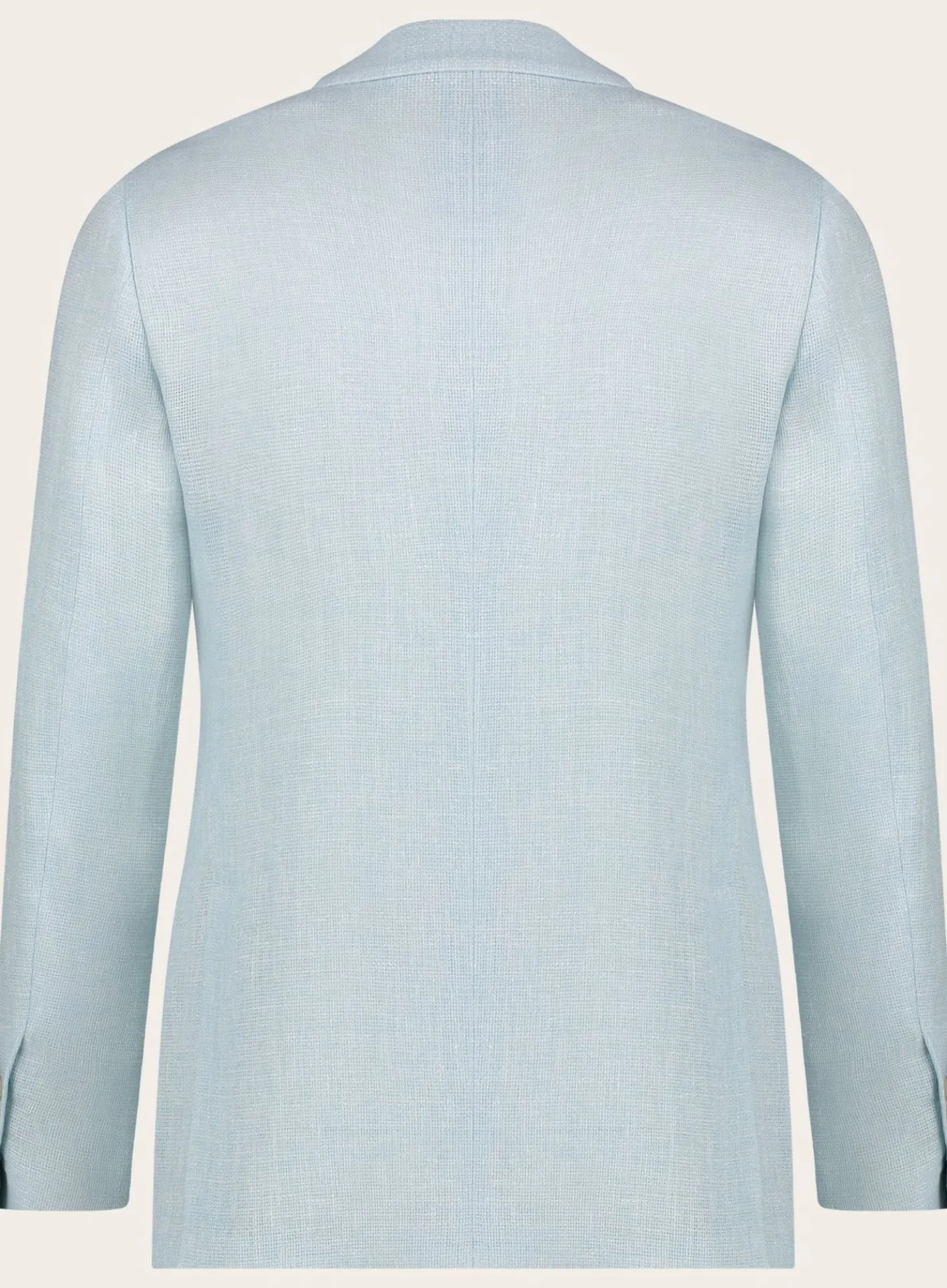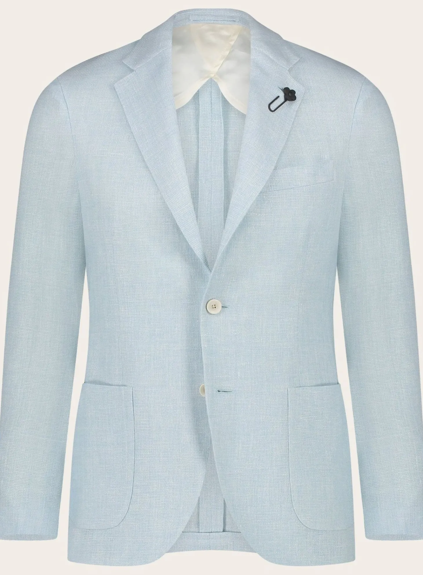 Dit Lardini Jasje Is Gemaakt Van Een Hoogwaardige Blend Van Linnen En Wol, Waardoor Het Zowel Lichtgewicht Als Ademend Is. Het Subtiele Weefsel Geeft Een Prachtige Textuur Die Diepte Toevoegt Aan Het Lichtblauwe Palet, Terwijl De Slanke Pasvorm Zorgt Voor Een Hedendaagse, Getailleerde Uitstraling.