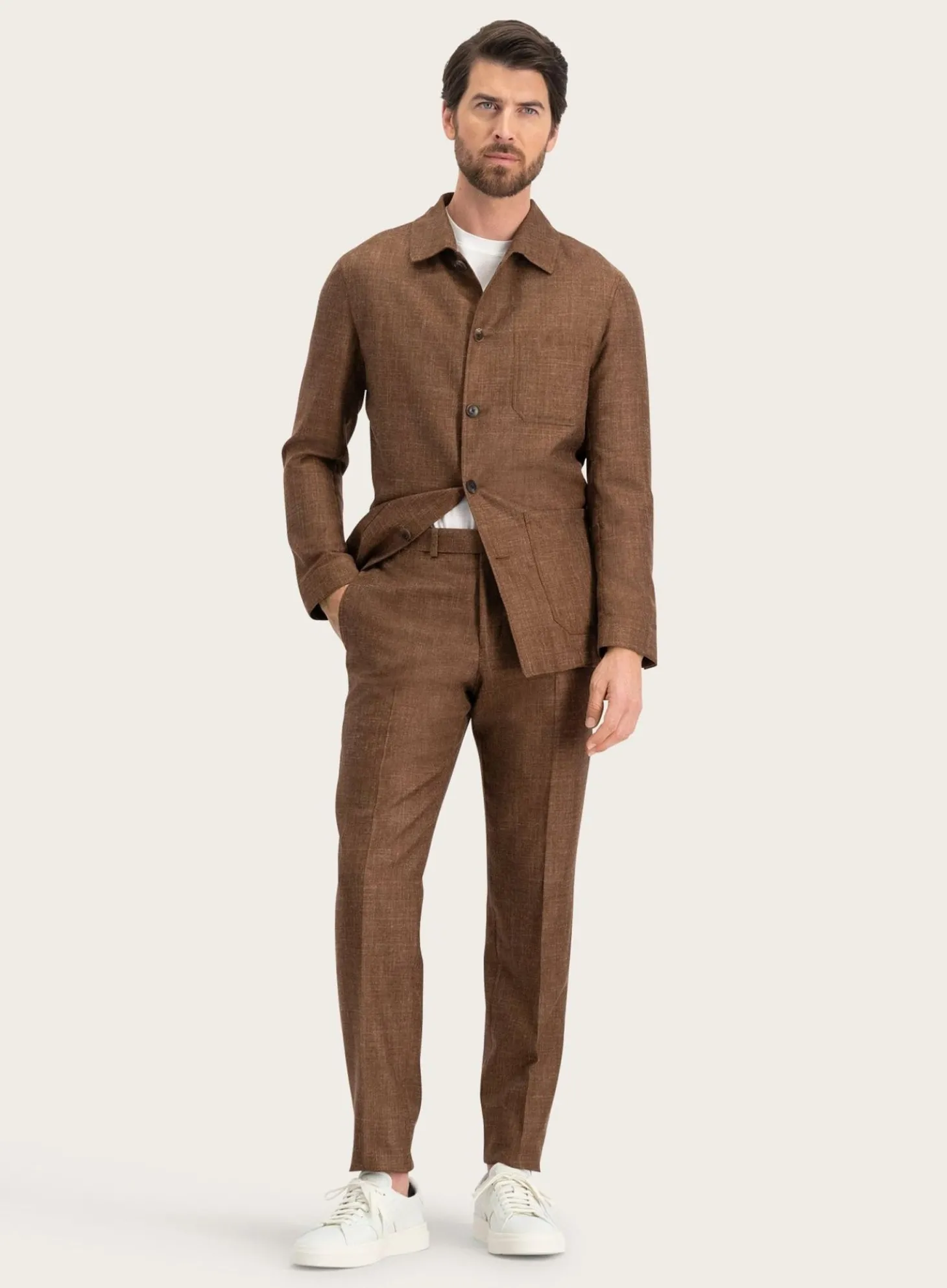 Het Jasje Van Ogér Is Vakkundig Ontworpen Met Een Klassieke Pasvorm Die Zowel Casual Als Formeel Gedragen Kan Worden. De Natuurlijke Mix Van Wol, Zijde En Linnen Verleent Het Jasje Een Subtiele Textuur En Een Ademende Kwaliteit, Waardoor Het Ideaal Is Voor De Overgangsperiodes.
