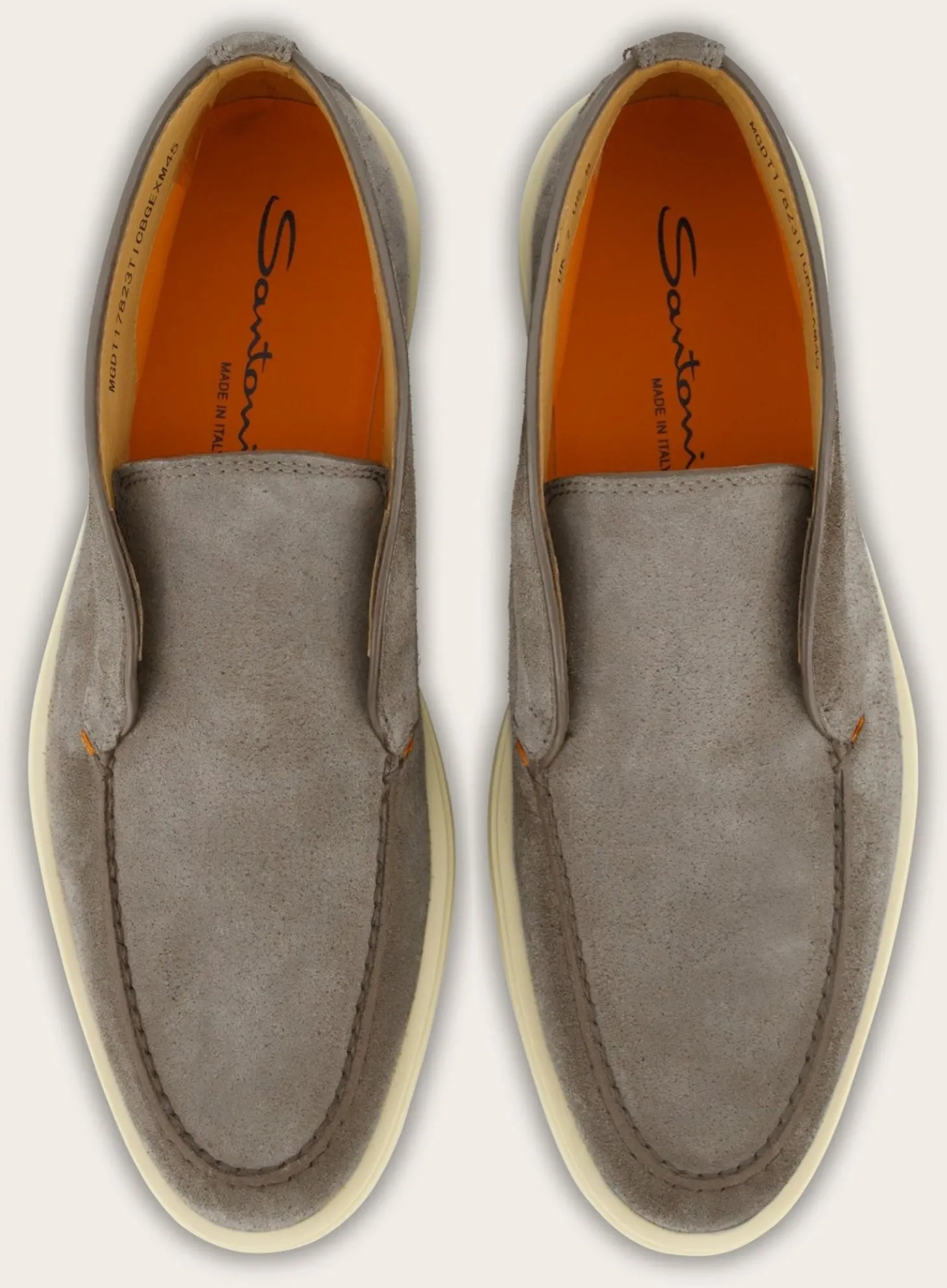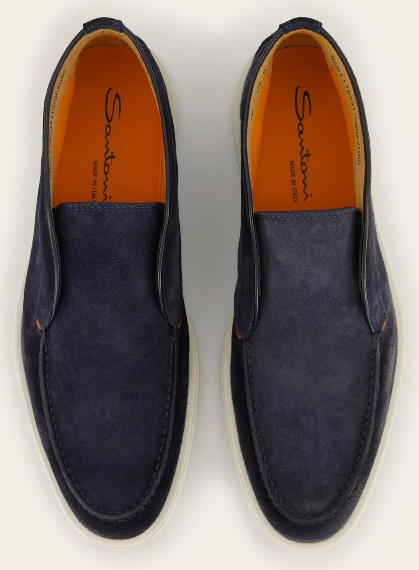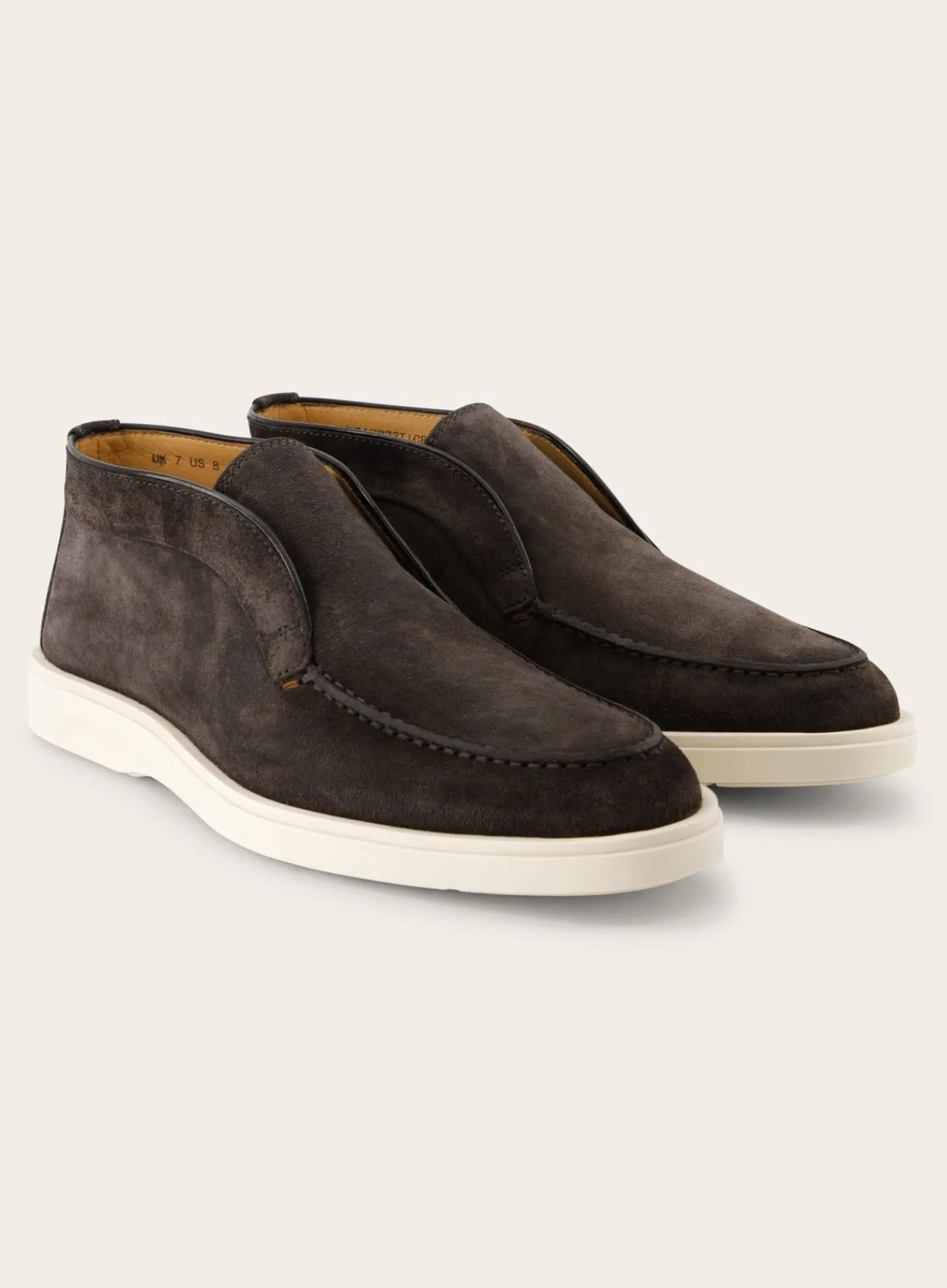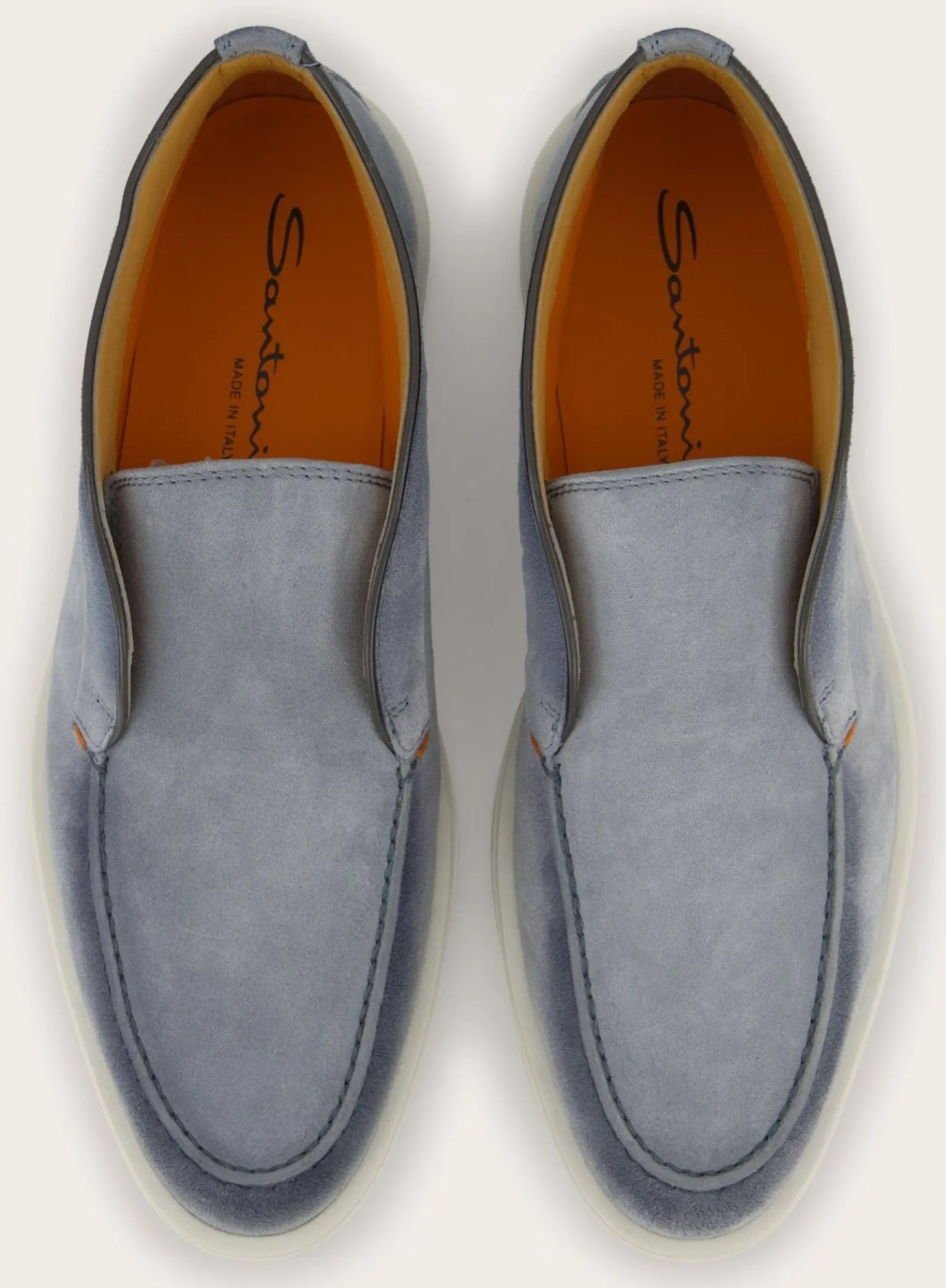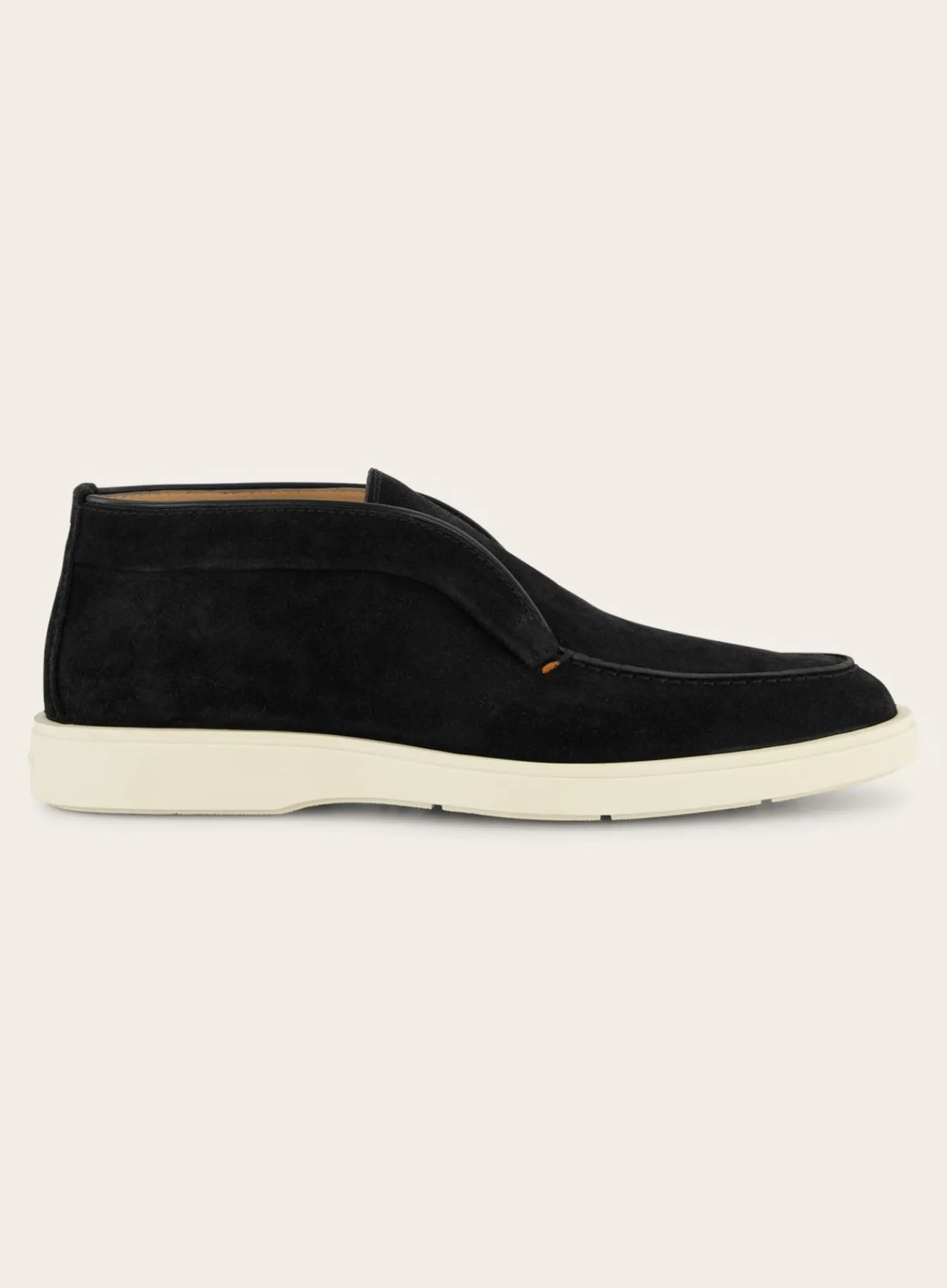 Deze Detroit Instappers Van Santoni Zijn Vervaardigd Uit Hoogwaardig Suède. De Gestikte Details Rondom De Neus En De Randen Geven Een Ambachtelijk Karakter, Terwijl De Contrasterende Witte Rubberen Zool Een Modern Contrast Biedt.